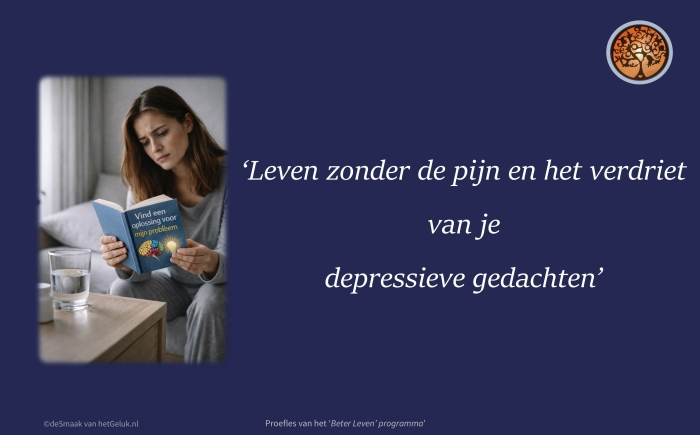 Mijn depressieve gedachten veroorzaakten veel pijn en verdriet. Ik zocht hulp en kwam bij het 'Beter Leven' programma terecht. Ik begon de onderliggende oorzaken van mijn pijn herkennen. Door de oefeningen werden mijn depressieve gedachten al snel minder. Ik heb de constante rust gevonden. Het gaat nu goed met mij. Dat gun ik jou ook.